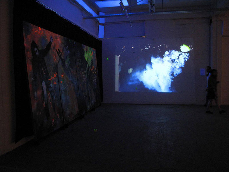 Vertical Collisions' common thread is tension, as researched, artistically explored and presented by 23 artists from different international environments. Miha Vipotnik, video and multimedia artist, curator of the exhibition invited artists from around the world to present their voice. The participating artists include illustrators, painters and sculptors, animators, programmers, multimedia artists, researchers, performers, video artists, cineastes and musicians, all of whom present their personal views on the social clashes in the “administered” technological information reality of today.