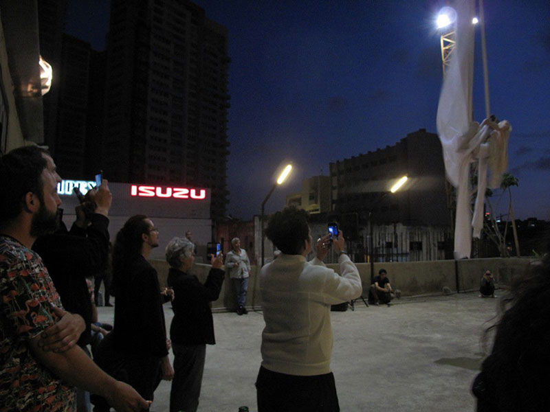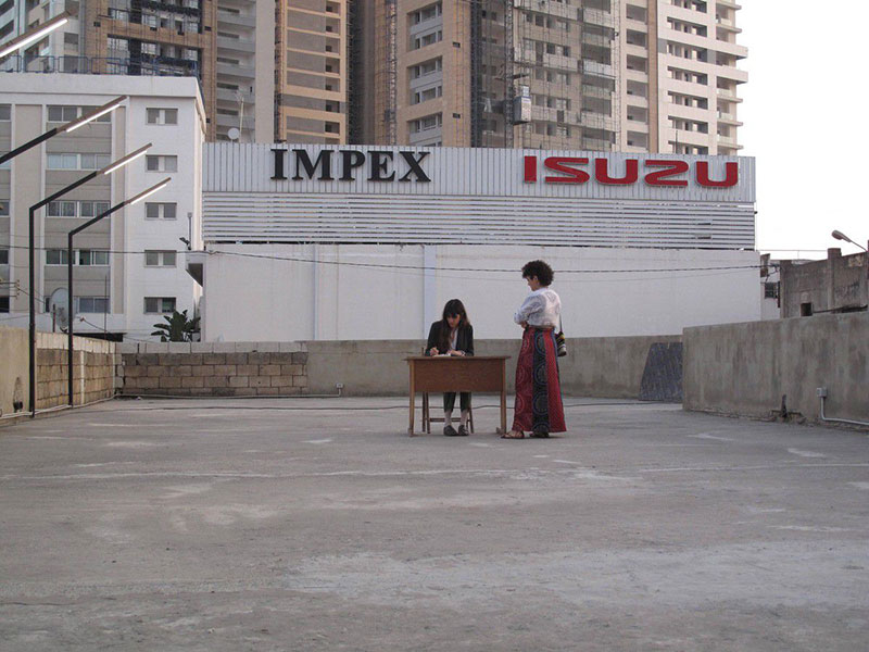 film documents the happening around the Vertical Collisions exhibition on one hand and also explores the questions of conflicts within the documentary genre on the other – these are the conflicts that arise during the installation and the conflict within the Lebanese society itself.