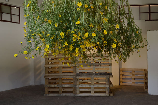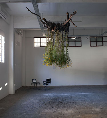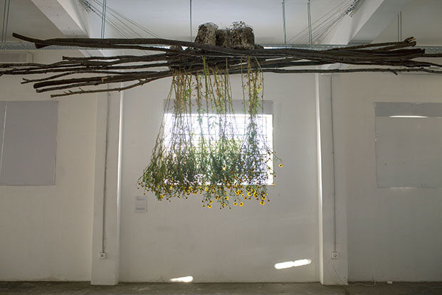 with changing the vertical orientation of wild seasonal plants the work creates a contradiction in the laws of survival (gravity) to question the human living methods (visitor-context) toward that of nature (the installation).