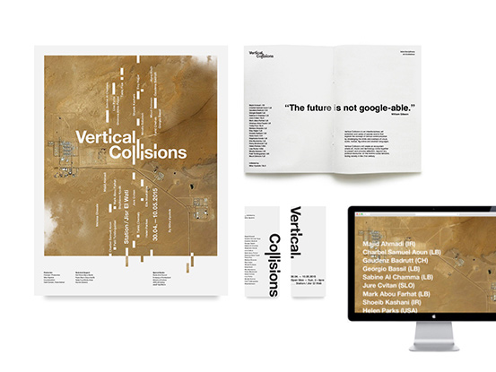 The exhibition's branding concept is that of vertical communication, tackling the system of power, surveillance, drone warfare and technologies. A Google Maps shot of a deserted part of the world was used to show how this issue rids us of our humanity and personal uniqueness, leading to a “lifeless” earth.